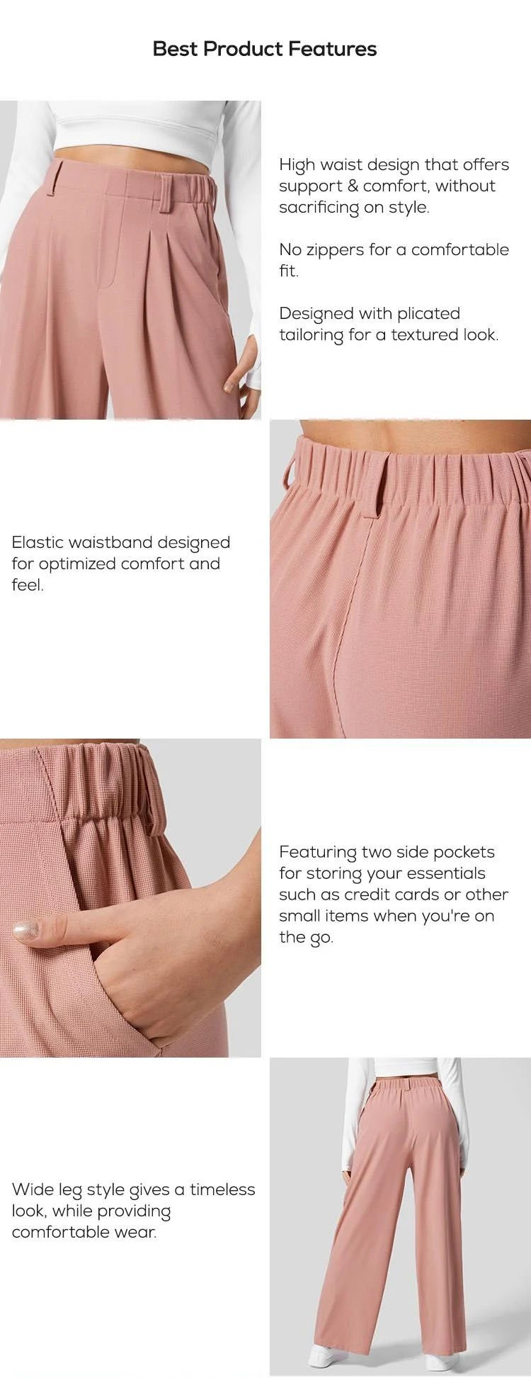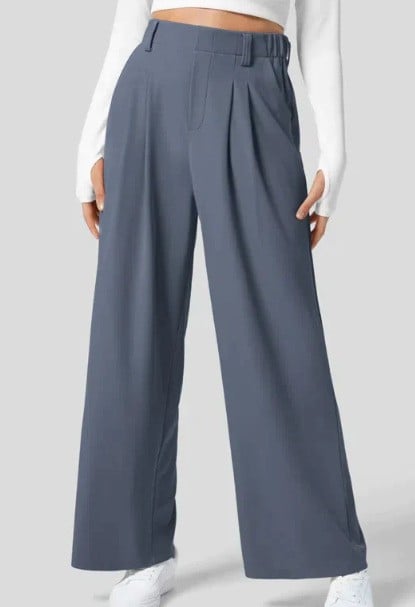 High Waisted Plicated Side Pocket Wide Leg Pants