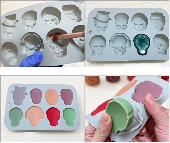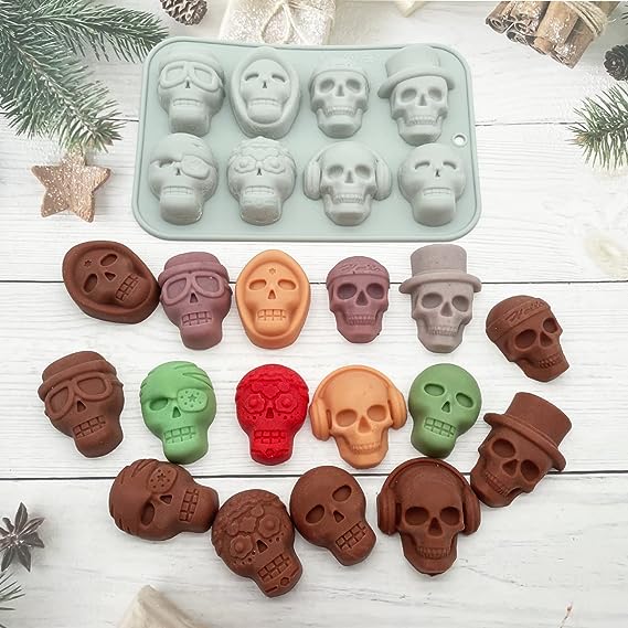 【Chocolate mold set】 2 pieces skull silicone molds, 8 different shapes of skulls. Beautiful unique skull figure complete with realistic and beautiful.